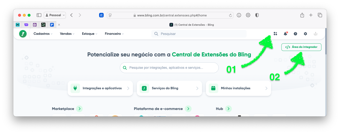 Home > Preferências > Integrações > Configurações de integração com lojas virtuais e marketplaces