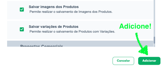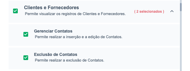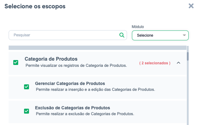 Importante: Certifique-se de que todas as permissões necessárias estejam ativadas. A ausência de qualquer permissão pode impedir o funcionamento correto da integração.
